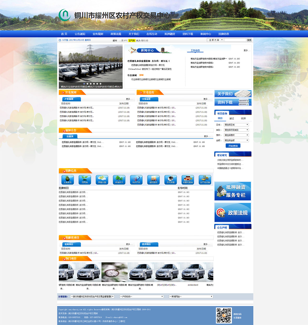 【服务诊断】:铜川耀州区农业局是耀州区农村产权交易中心,主要为耀州区农村提供一个交易场所,针对这些问题,网营公司量身定做了一个服务方案+网站,帮助企业提高知名度。